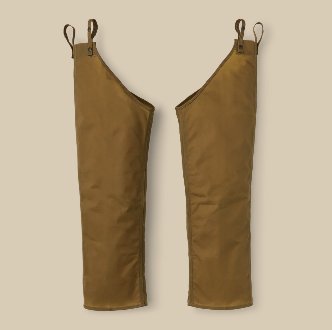 Filson's Tin Cloth Chaps provide straight-forward protection from the water, mud and thorns often encountered on the jobsite and in the field. They're made from the classic heavy-duty waxed canvas legendary for its durability. Two attachment loops prevent twisting around your legs and feature length-adjustment snaps. Ideal for adapting to various conditions in the field.