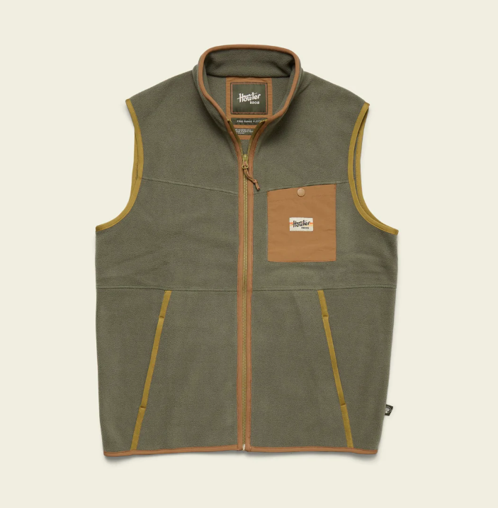 Howler Brothers' Free Range Fleece Vest is a no-frills base layer or cool day warmer. Wear this at the family Thanksgiving football fiesta, under your ski shell when bombing runs, walking to your night class, or downtown on a Friday night. It works perfectly for all of those events, looks sharp, and is a no-brainer add to your bag whenever a chill might hit the air. Soft and warm.