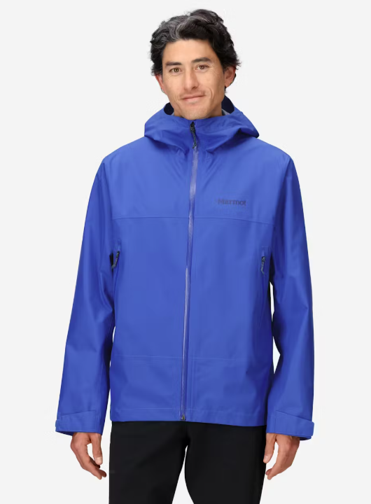 Hand pockets are perfectly placed for easy access when you're clipped into your hip belt or harness, while pit zips let you dump heat so you don't clam up when rainy miles and vert add up. A fixed hood with peripheral cord adjustment, a drawcord elastic waist, and VELCRO® adjustable cuffs let you cinch up closures to keep water out and comfort locked in.