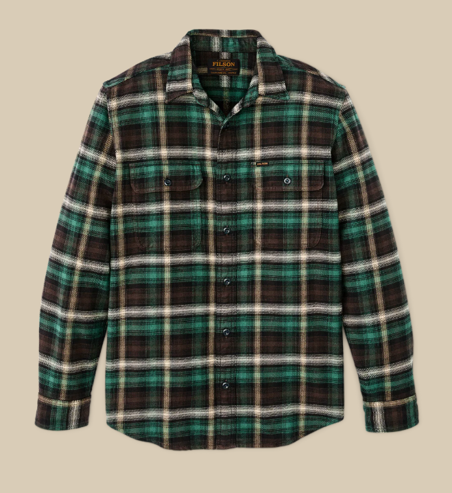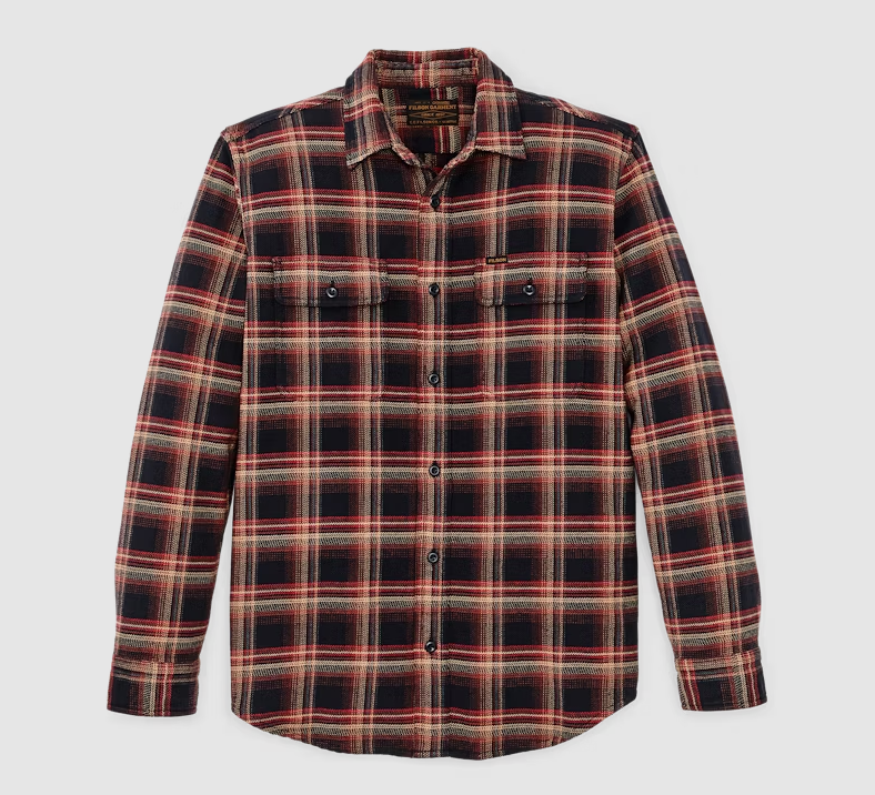 The Filson Vintage Flannel Workshirt has been a favorite of Filson employees and customers alike since its 2015 introduction, though its classic style makes it appear it was introduced decades earlier! Built with thick and breathable cotton flannel, it’s ideal for cold weather. The fabric is heavily brushed for outstanding softness and thermal retention. Dual shoulder pleats on the back yoke provide unrestricted range of motion for working overhead, casting a fly rod, or shouldering a shotgun. Virtually unbreakable buttons are used for the front closure and adjustable cuffs to ensure long-term durable service. Proudly offered by Jesse Brown's Outdoors.