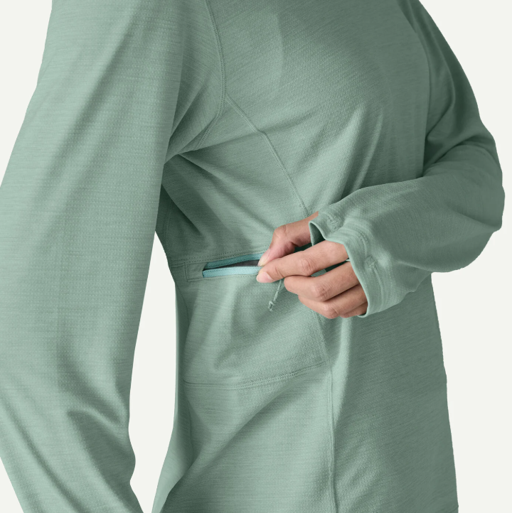 Thumb holes and middle finger loops at the cuffs provide added sun protection for the backs of the hands