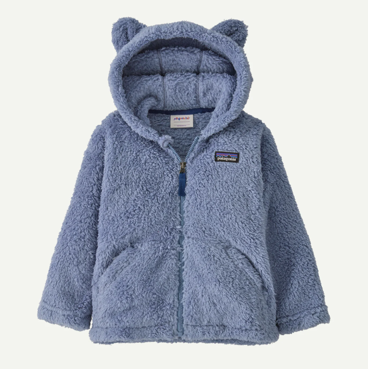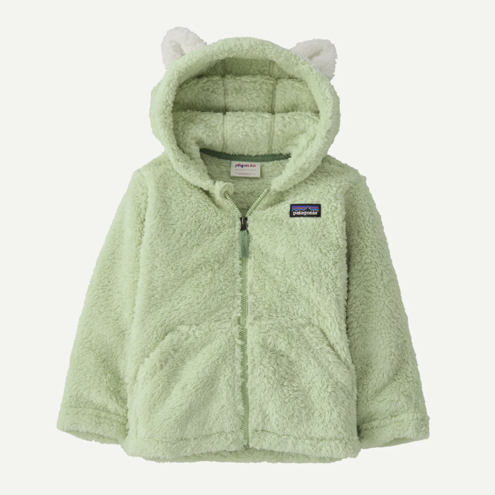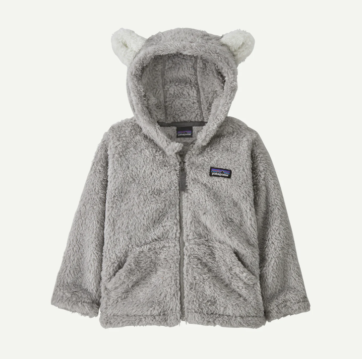 The Baby Furry Friends Hoody is made to keep your tiny human warm! High-pile, double-faced 100% recycled polyester fleece makes for a cozy jacket.